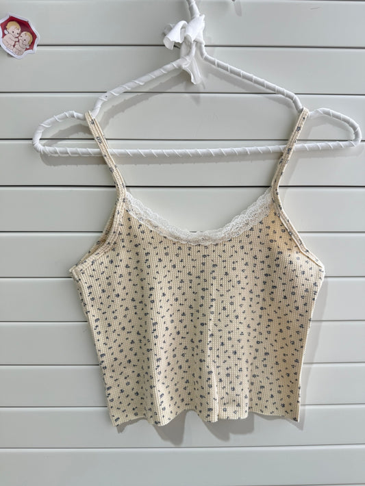 JASTIE Blue Print Crop Floral Tank Top