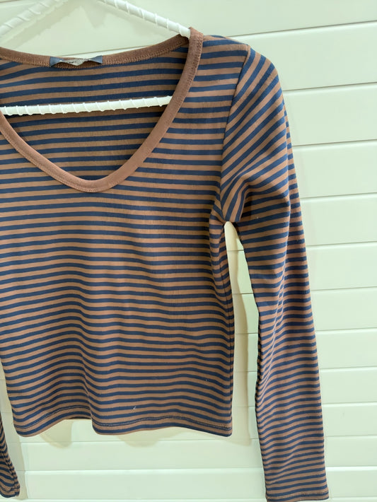 JASTIE Brown Striped Long Sleeve Top Women T Shirts