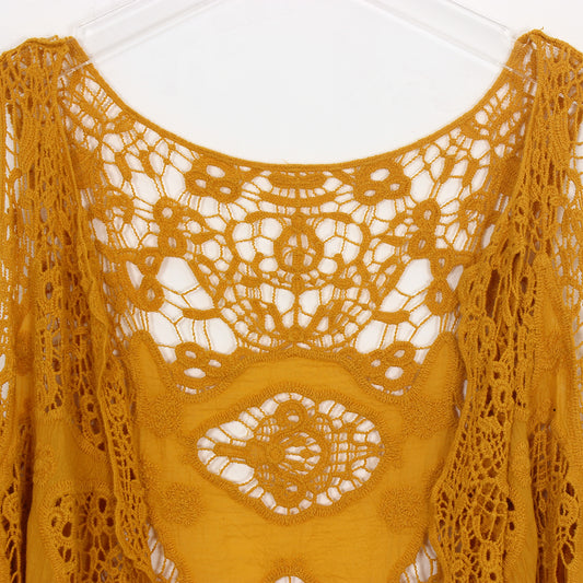 Haut cache-cœur en crochet avec patch hippie froal jaune foncé