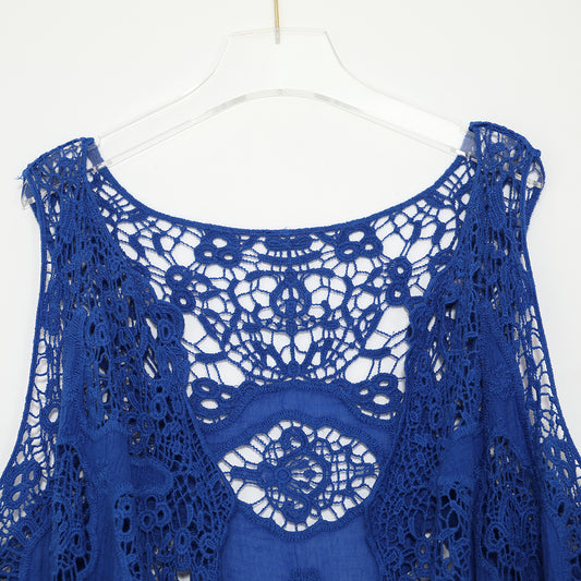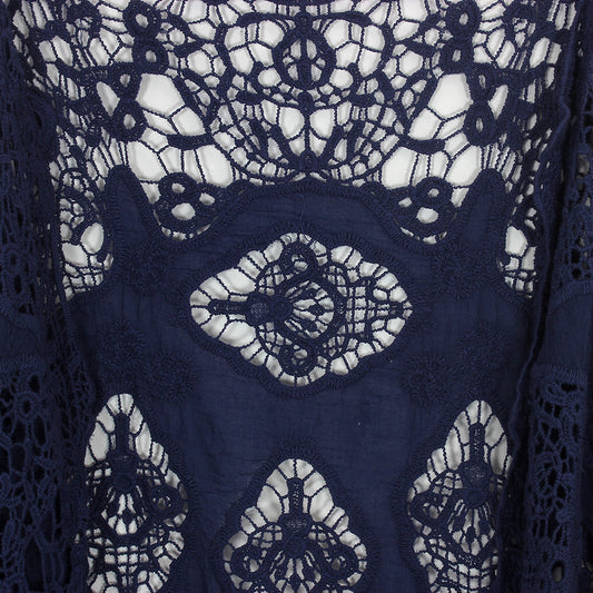 Haut cache-cœur en crochet avec patch hippie froal bleu marine
