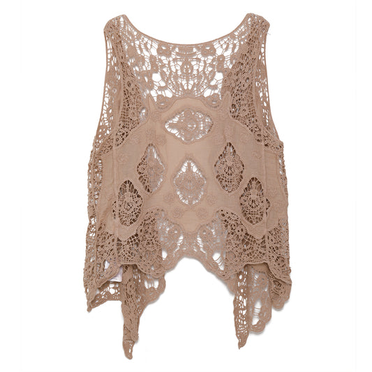 Haut cache-cœur en crochet avec patch hippie Froral Taupe chaud