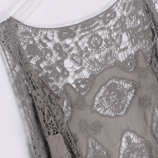 Haut cache-cœur en crochet avec patch hippie froal gris