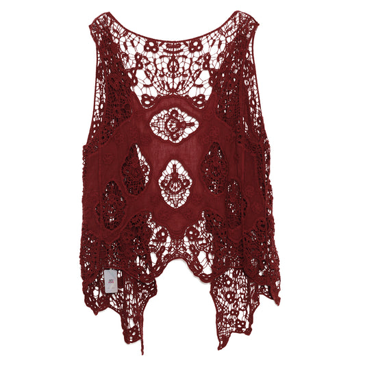 Haut cache-cœur en crochet avec patch hippie Froral rouge vin